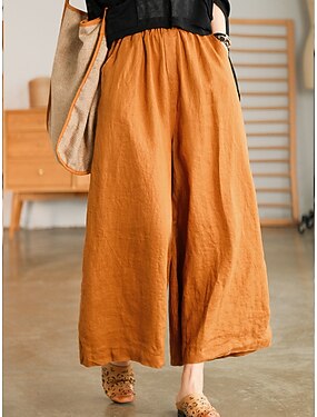 Dame Imitert bomullslin Bred Bukseben kinesisk Sommerbukser Ferie Grunnleggende Fritid Full lengde Høy Midje عادي Elastisk midje comfy Myk Bekvem Elastisk utendørs Gate Gul Navyblå Grønn Beige Sommer