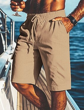 Herre Linbukser Bukser Sommerbukser Strandbukser Snorer Elastisk midje عادي Komfort Pustende Daglig utendørs Strand Ferie Mote Svart Hvit