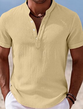 Herre Skjorte Linskjorte Popover skjorte Sommerskjorte Strand Klær Skjorte med bandkrage عادي Feriereise Avslappet Svart Hvit Gul Rosa Kortermet Henley Sommer Klær