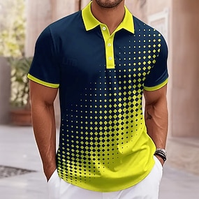 Herre Geometrisk Golf skjorte Kortermet Poloskjorter Skjorter med krage Business Casual Ferieklær Formell klær Festivalklær 3D-utskrift Knapper Sommer Vår Blå Gul Grønn