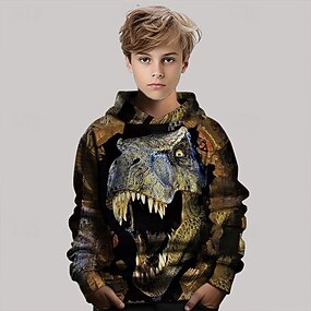 Gutt 3D Grafisk Dinosaur Hattetrøje Pullover Langermet 3D-utskrift Vår Høst Sport Mote Gatemote Barn 4-12 år Med hette utendørs Avslappet Daglig Normal