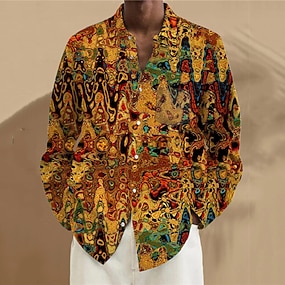 Herre 3D Print Skjorte Linskjorte Skjorte med knapper Langermet Kunstnerisk Abstrakt Dagligdagstøy Ut på byen Helg Vår Aftæpning Trykt mønster Knapp ned Lilla Gul Grønn