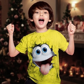 Jul Gutt 3D Tegneserie T skjorte T-skjorte Kortermet Sommer Vår Mote Grunnleggende Barn 4-12 år Crew-hals utendørs Avslappet Daglig Normal