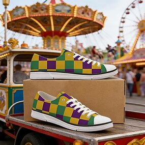 Kvinners Mardi Gras konfetti trykk snøres canvas sneakers - Stilige komfortable hverdagssko karnevalsparader fornøyelsesparker gatefeiringer og sommerlige utflukter