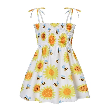 Barn Jente Kjole Grafisk Ermeløs Fest utendørs Avslappet Mote Daglig Bomull Sommer Vår 2-13 år Hvit Gul Rosa