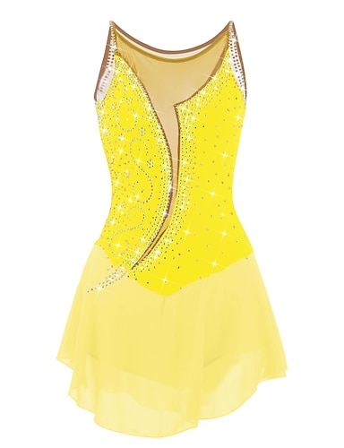 Kjole til kunstløp Dame Jente Skøyteløp Kjoler Gul Åben Ryg Spandex Høy Elastisitet Trening Konkurranse Skøyteklær Håndlaget Krystall / Rhinstein Ermeløs Skøyting Kunstløp