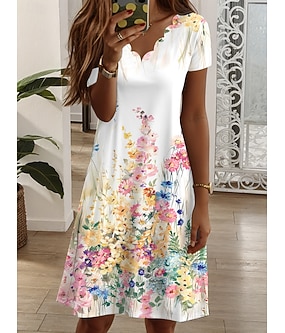 Dame Midikjole Uformell kjole Swingkjole Kjole med A-linje Stilfull Fritid Feriereise Daglig Normal Blomstret Kortermet V-hals Svart Hvit Gul Rosa Sommer