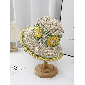 Vevd bohemsk solhatt for kvinner, flerfarget, sammenleggbar, perfekt for strand- og feriesteder, uformell hverdagsbruk