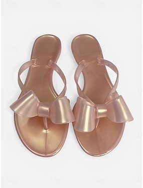 Søte rosa strandsandaler til dame - romantiske, overdimensjonerte sløyfesandaler med komfortabel flat såle for sommerferier og tropiske øyturer &uformelt feriestedstøy