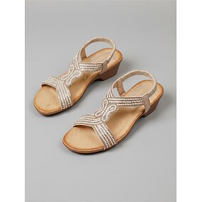 rhinestone-sandaler med t-rem for kvinner - elastiske sandaler med åpen tå bak bak for fritids- og sommerklær