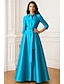 A-Line Kveldsdrakt Elegant Kjole Formell Bryllupsgjest Gulvlengde Langt ermet Skjortekrage Lomme Sateng med Slit