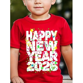 bomull barn gutter nyttårsfest 2026 svart rød grafikk bokstav &t-skjorte med nummer, bluse, rund hals, korte ermer, utendørs, hverdagsklær, mote, gateklær, designer, trykk, sommer
