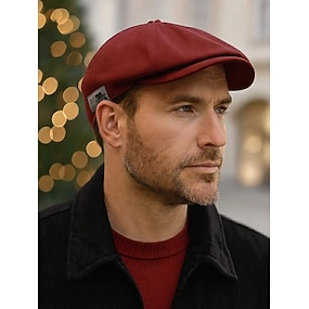 Herre bomullsflakhatt vintage avisboyhatt, justerbar Gatsby beretlue til julefester, vinterantrekk og hverdagsbruk