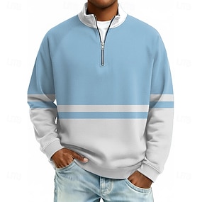 Herre Fargeblokk Horisontale strips Poloskjorter med glidelås Langermet Poloskjorter bestefars krage Fritid Skole treningsklær Ferie Dagligdagstøy 3D-utskrift Kvart zip-polo Vår Høst Navyblå Grønn