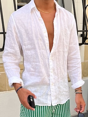 Herre Linskjorte Sommerskjorte Strand Klær Uformell skjorte Skjorte med knapper عادي Feriereise Avslappet Blå Svart Hvit Rosa Langermet Knaphul Vår sommer Klær