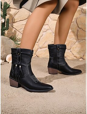 vestlige cowboystøvler for kvinner med brodert design - komfortable mid-leggstøvler for landsbegivenheter og hverdagsbruk