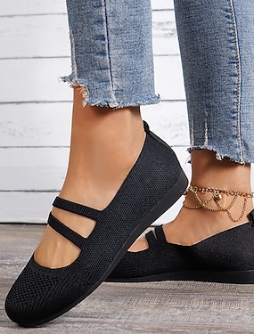 kvinners svarte pustende strikkede ballettsko – komfortable slip-on sko for fritids- og arbeidsklær