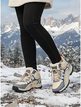 Damesko med lappeteppe og snøring i vinterstil med varmt fôr – avslappede utendørssko med sklisikker såle, ideelle for daglig bruk, fotturer, reiser og kaldt vær
