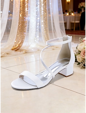 Hvite damesandaler med åpen tå, høy hæl, geometrisk hæl og vevde detaljer – perfekt for sommerferier, feriestedklær og strandferier