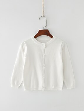 Barn Jente Cardigan Helfarge Skole Langermet Aktiv Bomull 7-13 år Vår vann Blå gurkemeie Mørkt pulver