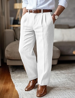 Herre Linbukser Bukser Sommerbukser Plisserte bukser Lomme foran Rett ben عادي Komfort Pustende Full lengde utendørs Avslappet Daglig Ferie Mote Svart Hvit Uelastisk