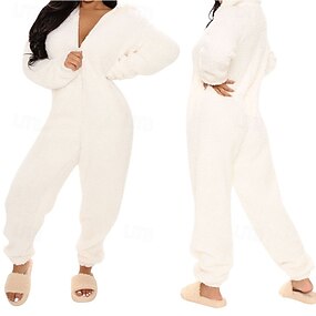 Dame lounge Onesies Varm Mote Sexy Ren farge Glidelås Hattetrøje Bukse Feriereise Hjem Gate Ermeløs Crew-hals Blå Svart Hvit Rød Brun Høst Vinter Normal