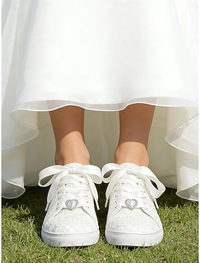 bryllupssneakers med brudeblonde – elegante sneakers i elfenben med lav topp med satengbånd og strassdetaljer for bruder og spesielle anledninger
