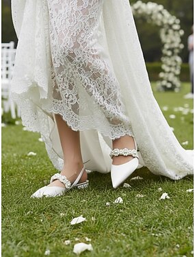 hvite slingback hæler for kvinner med perlepynt – spisse brude- eller festsko