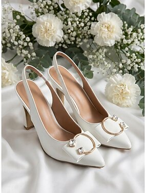 hvite slingback-hæler til brudekjoler - elegante spisse brudesko med strassspenne &blokkhæl for bryllup i byen, seremonier på taket &bruder