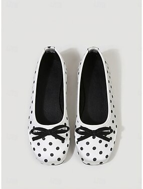 dameballetsko med polkaprikker – lette slip-on-sko med rund tå og sløyfedetaljer, vintage elegante komfortsko for kontorarbeid &hverdagsbruk