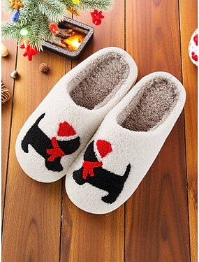 Hvite juletøfler til hund med nisseluedesign til dame – koselige, myke tøfler for vinterkomfort, julemorgen og avslapning i høytiden