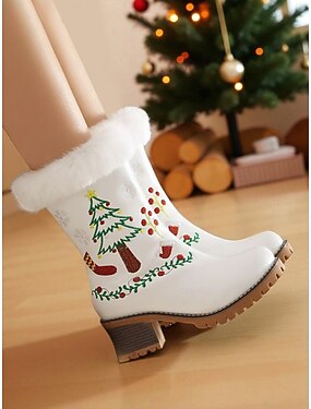 Julesnøstøvler til dame - røde fløyelsstøvler med snøfnuggbroderi og pelsfôr, høy hæl til høytidsfester, vinterarrangementer og festlige anledninger
