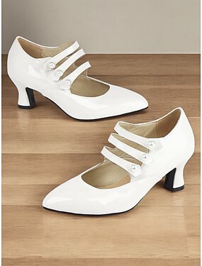 Kvinnenes patentlær falsk lær Mary Jane hæler - Vintage Gatsby mid-hæl pumper med perlestraps elegante sko bryllup og formelle anledninger