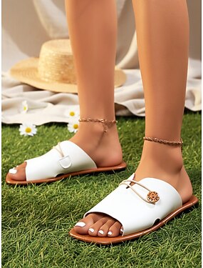 hvite flate sandaler med stropper til dame, komfortabel ferie &feriested kveldssko