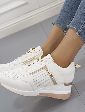 kvinners joggesko wedge plus size høyde økende sko utendørs daglig fargeblokk sommer rund tå sporty klassiske fritids tennissko walking blonder grå rosa hvite joggesko