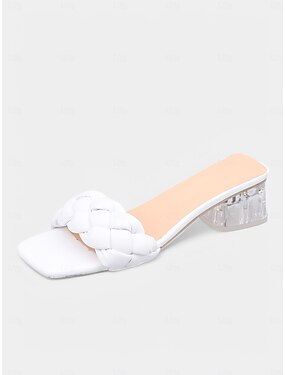 hvite vevde sandaler med blokkhæl til dame - elegante peep toe-sko med utskjæring til bryllupsgjester, komfortable pumps med mellomhæl til hagen &utendørs sommerbryllup