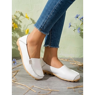 Hvite perforerte loafers med blomsterdetaljer til dame – myke, avslappede flate sko for hageturer, bilkjøring og hverdagskomfort