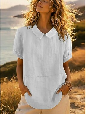 Dame Skjorte Skjorter i bomullslin Strandskjorte Bluse عادي Stilfull Klassisk Moderne Kortermet Skjortekrage Vanlige topper Daglig Ferie Strand Klær Blå Hvit Navyblå Sommer Vår