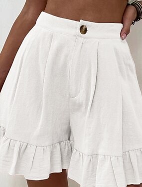 Dame Linblanding Shorts Sommershorts Ferie Mote Gatemote Kort Høy Midje Helfarge عادي Lomme Elastisk midje comfy Komfort Myk Uelastisk utendørs Gate Dagligdagstøy Svart Hvit Gul Rosa Sommer Vår Høst