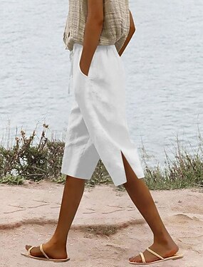 Dame Capri-bukser Imitert bomullslin Bukser Sommershorts Mote Gatemote Knelengde Naturlig عادي Lomme comfy Utendørs Daglig Gate Ut på byen Lys Himmelblå Svart Hvit Kakifarget Sommer Normal