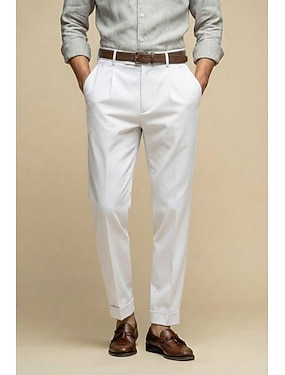 Menn Bomull Lin Dressbukser Uformelle bukser Gateklær Virksomhet Elegant Formell Stil Fritid Hvit Rosa Beige Helfarge Skreddersydd Lang Uelastisk