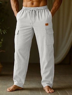 Herre Militærbukser Linbukser Bukser Sommerbukser Strandbukser Snorer Lomme Elastisk midje عادي Komfort Pustende Knelengde Feriereise Daglig Ferie Ferie Hawaiisk Svart Hvit Uelastisk