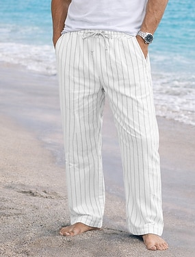 Herre Linbukser Bukser Sommerbukser Strandbukser Snorer Lomme Elastisk midje عادي Komfort Pustende Daglig Strand Feriereise Hawaiisk Bohem Svart Hvit