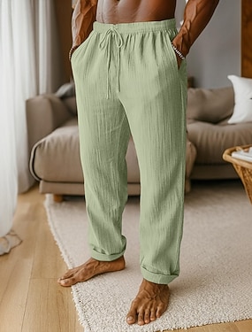 Herre Linbukser Bukser Sommerbukser Gazebukser Snorer Elastisk midje Rett ben عادي Komfort Pustende Full lengde Hjem Avslappet Daglig Mote Klassisk Stil Svart Hvit