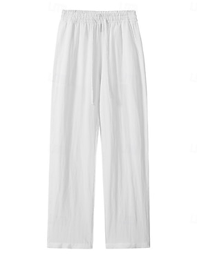 Herre Linbukser Bukser Sommerbukser Snorer Elastisk midje Bred Bukseben عادي Komfort Pustende Full lengde Avslappet Daglig Ferie Mote Klassisk Stil Gresskar Hvit Mikroelastisk