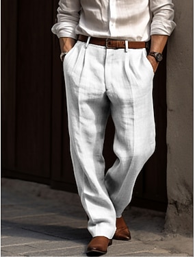 Herre Linbukser Bukser Sommerbukser Plisserte bukser Dress Slacks Lomme foran Rett ben عادي Komfort Pustende Avslappet Daglig Ferie Mote Grunnleggende Svart Hvit