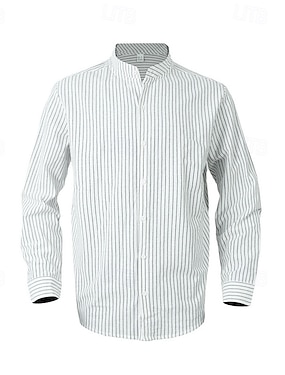 Herre Skjorte linskjorte Skjorte med bandkrage Popover skjorte Sommerskjorte Strand Klær عادي Feriereise Curise Svart Hvit Blå Langermet Båndkrage Vår sommer Klær