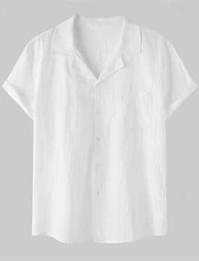Herre Skjorte Hvit bomullsskjorte Uformell skjorte Skjorte i bomullslin عادي Feriereise Gate Hvit Beige Kortermet Crew-hals Sommer Klær Knapp ned