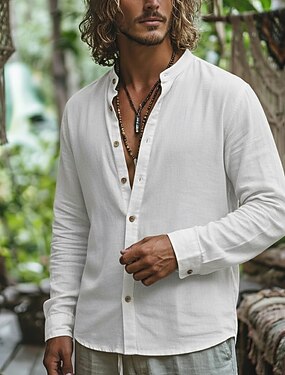 Herre linskjorte Skjorte med bandkrage Sommerskjorte Strand Klær Helfarge Daglig Hawaiisk Svart Hvit Vin Navyblå Langermet Henley Vår & Vinter Klær krage skjorter