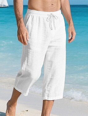 Herre Capri-bukser Lin Shorts Sommershorts Strandshorts Lomme Elastisk midje Snorer عادي Komfort Pustende Kalv lengde Feriereise Ferie Strand Hawaiisk Bohem Svart Hvit